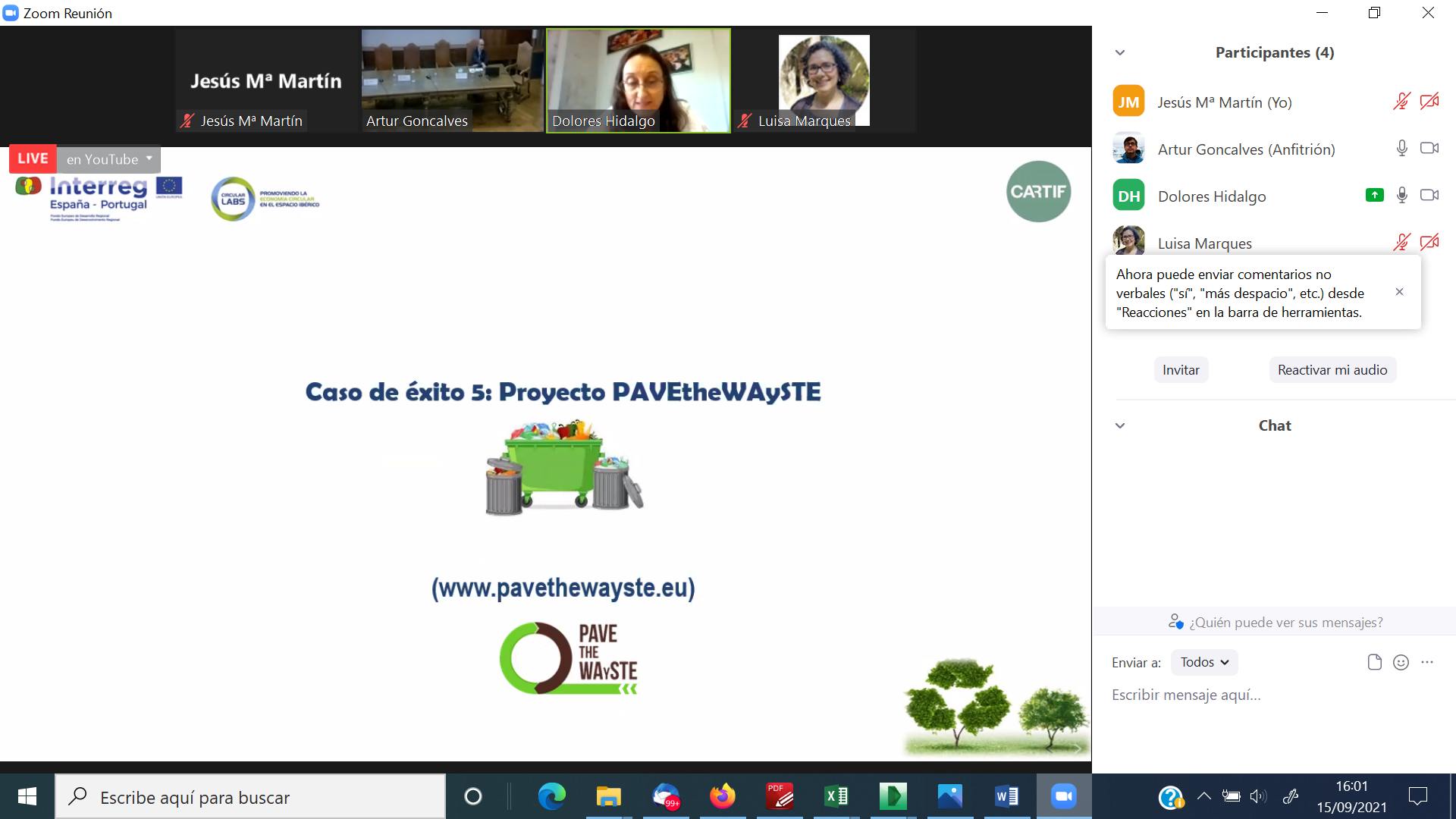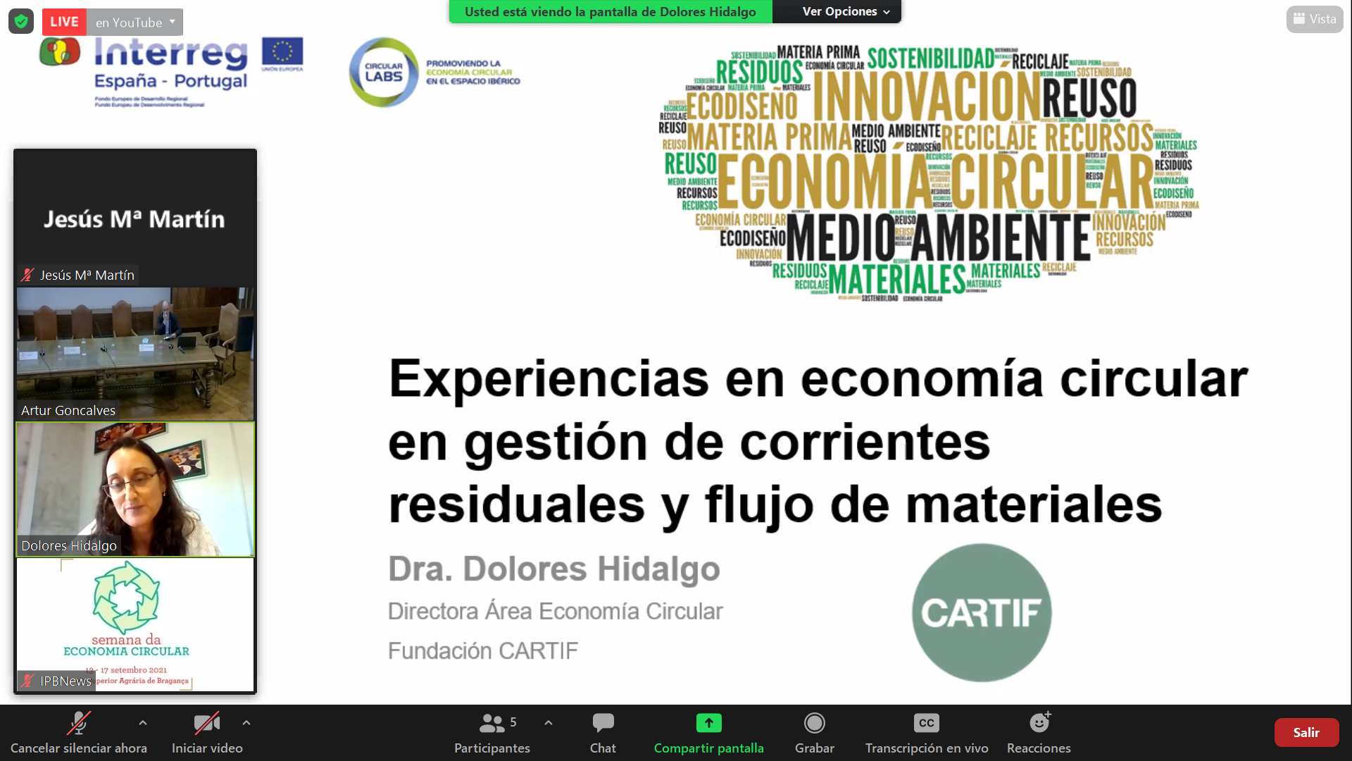 On September 15, CARTIF Technological Institute virtually presented the project’s goal and operation within the framework of demonstrating Circular Economy success stories, at the Circular Economy Week conference held in Braganca Portugal.